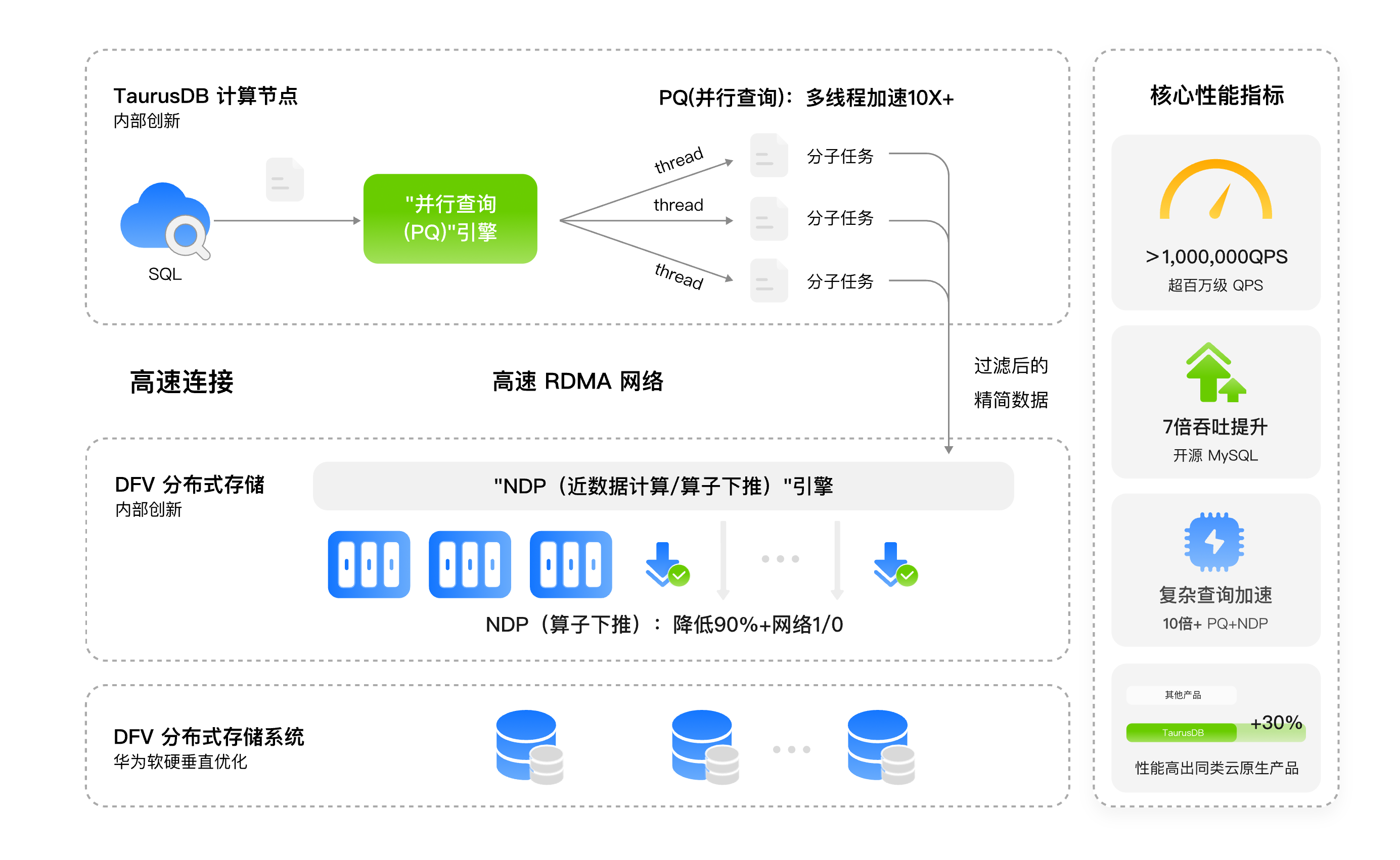 超百萬級 QPS:依托華為軟硬垂直優(yōu)化的 DFV 分布式存儲,性能比同類云原生產(chǎn)品高 30%,最高可達開源 MySQL 的7倍。