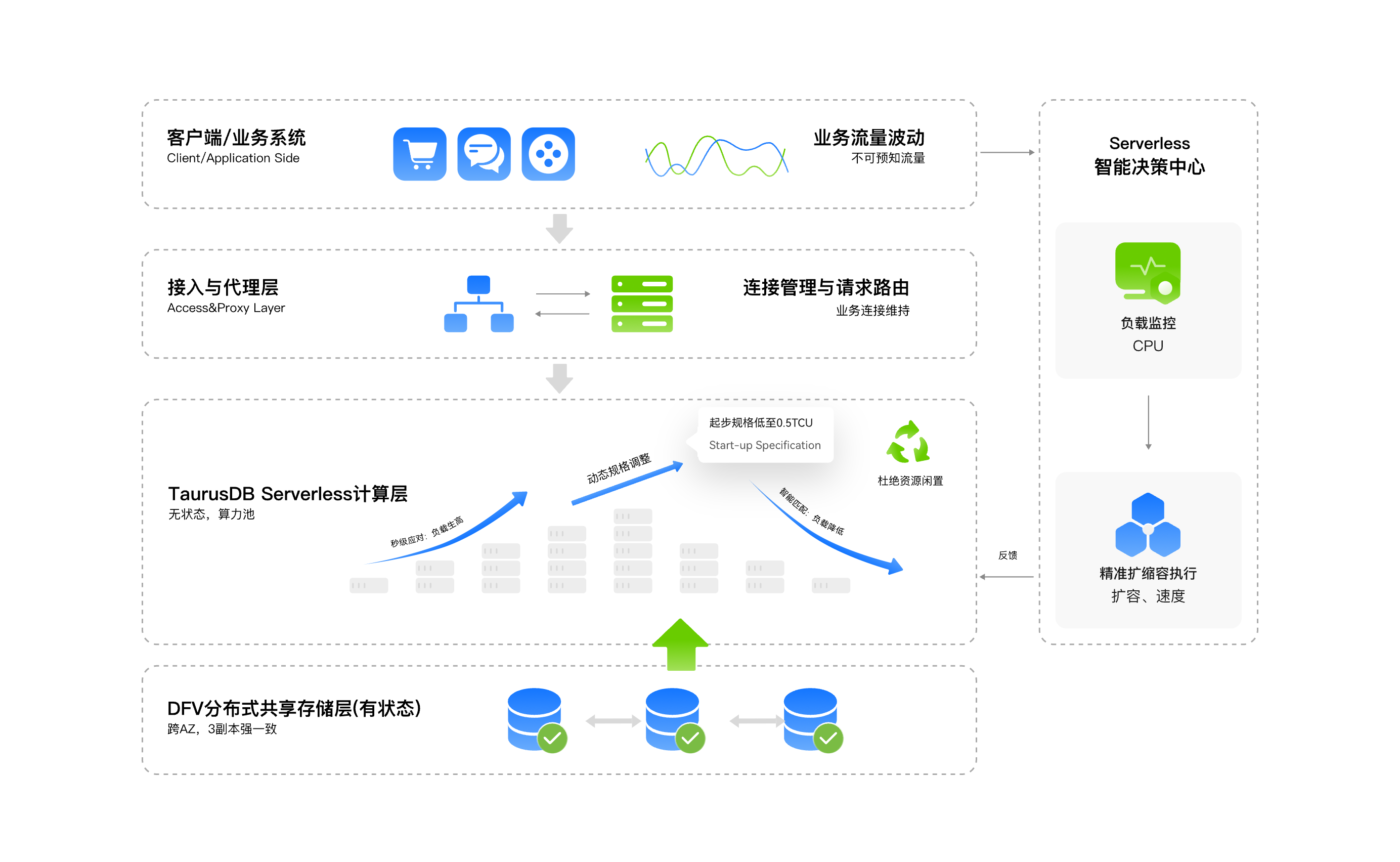 智能精細化管理,算力起步規(guī)格低至 0.5 TCU,通過智能匹配業(yè)務負載,精確控制擴縮容,杜絕資源閑置成本。